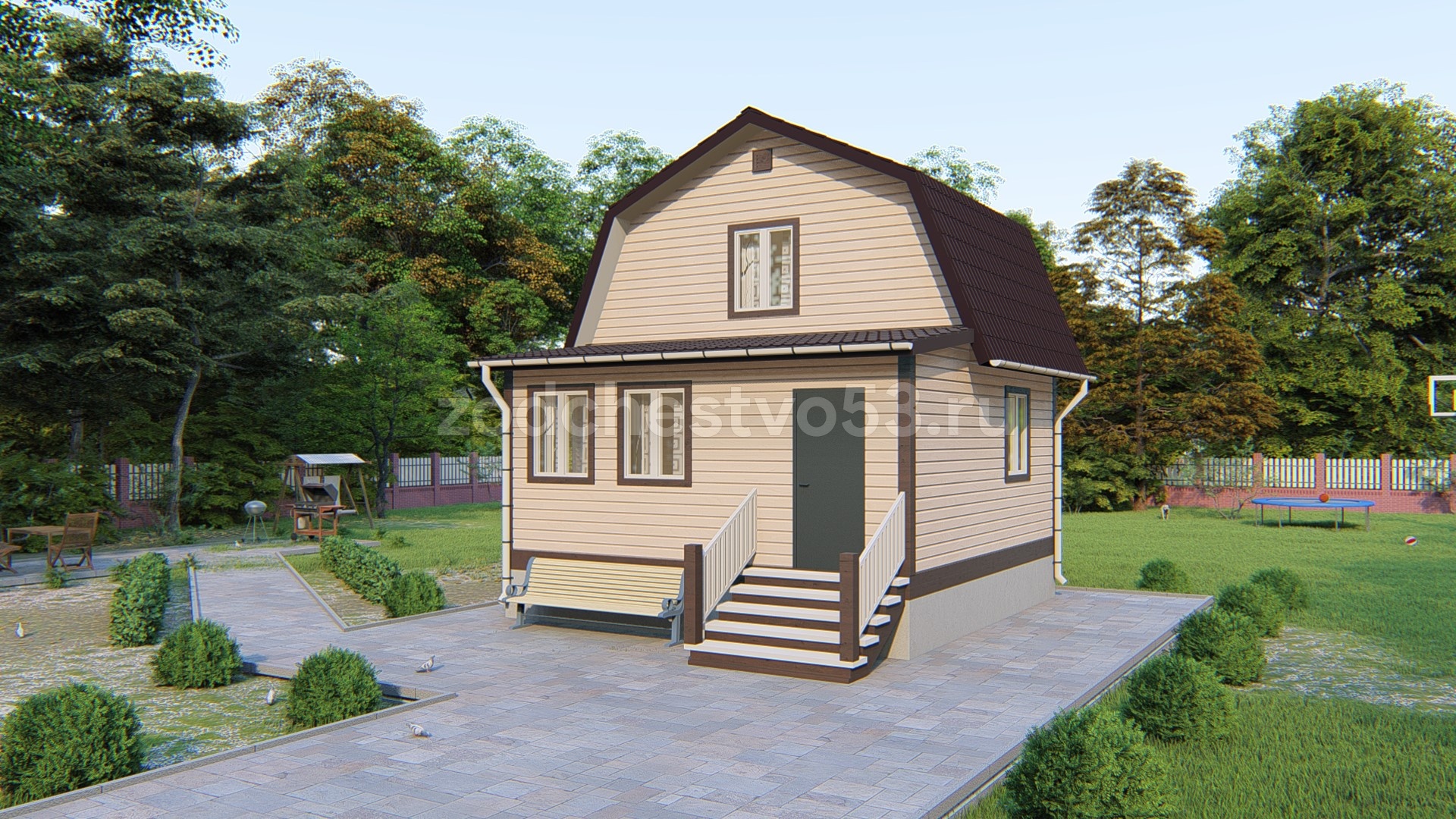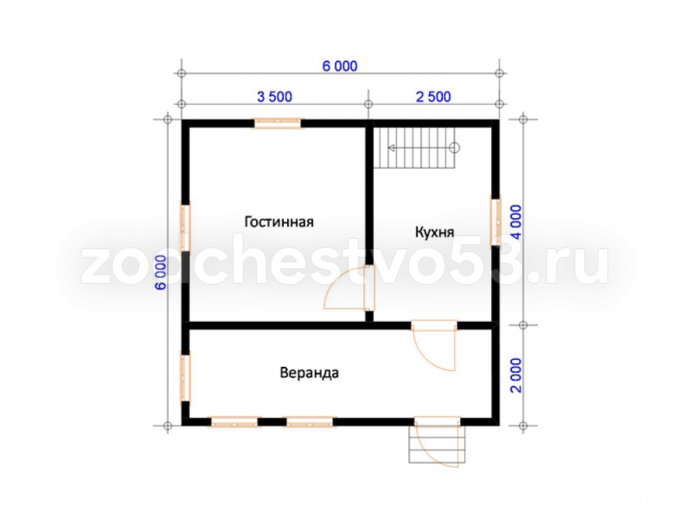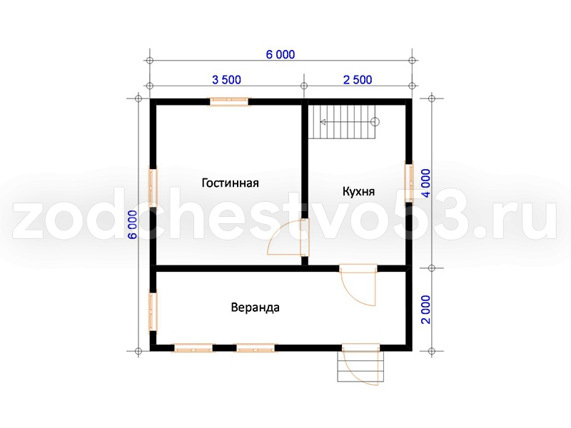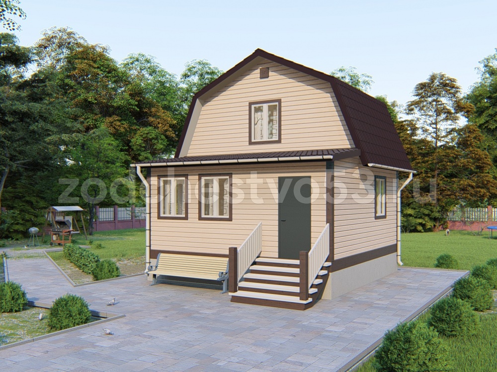 Проект Д-9. Дом из сухого бруса 6х6 м.