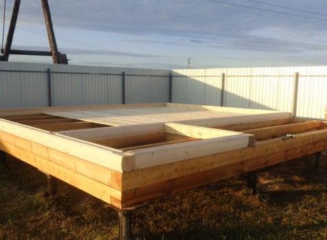 Терраса 1.5×4 м., открытая (только строганные столбы 100×100).