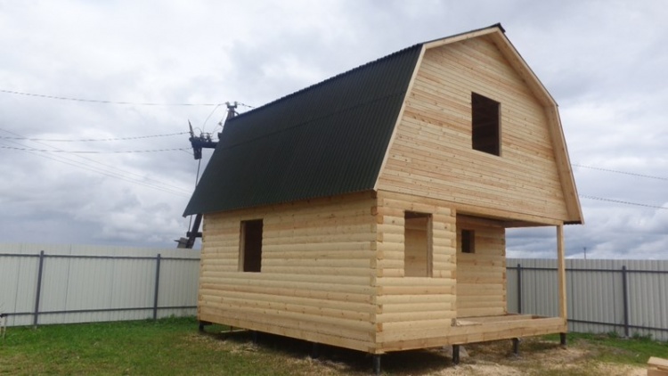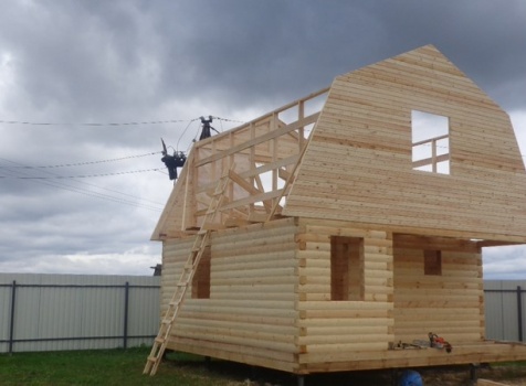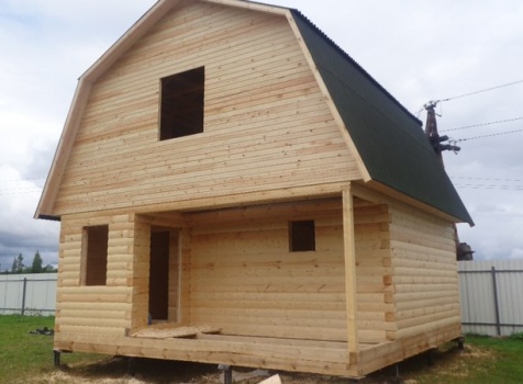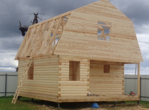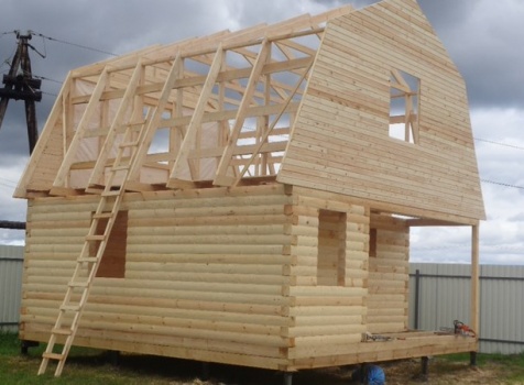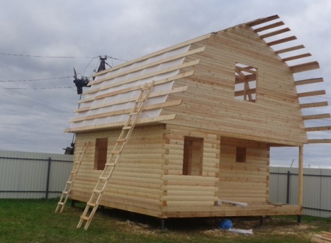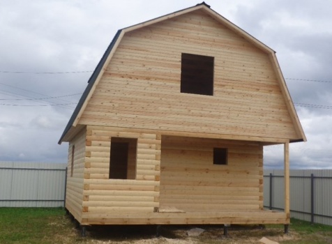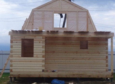 Сруб бани 6×6 м. из профилированного бруса 150×150 по проекту Крокус под ломанной крышей. Построена: Тверская область, Калининский район, Каблуковское сельское поселение.