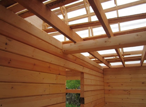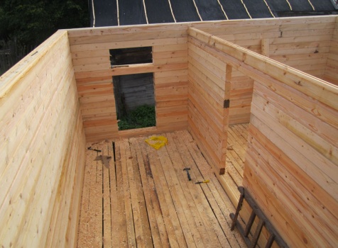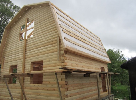 Фронтоны — каркасно-щитовые, обшитые блок-хаусом.
